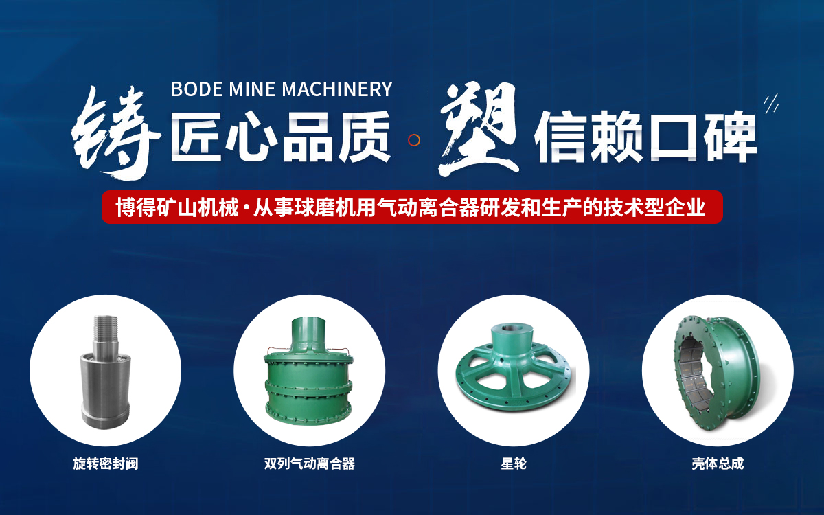 靖江市博得礦山機械有限公司位于江蘇沿江經濟開發帶的靖江市生祠鎮,是一家從事球磨機用氣動離合器研發和生產的技術型企業。現有金屬加工、裝配等車間。質量是企業的根本,為了保證產品的質量,公司先后從設備生產廠家量身定制了大型精湛的熱處理設備及動平衡檢測儀。以向客戶提供優良的產品、過硬的質量、合理的價格、及時的交貨時間為經營原則,忠誠地服務好我們的每一位客戶。 公司堅持以人為本,以市場為中心,強化各項管理,不斷開發新品,以客戶滿意為宗旨,服務于生產廠家及用戶,真正做到與客戶共榮存,兩品同步,兩價共享。經多年努力現已和國內主要磨礦機生產廠家聯合配套,并行成部分出口,受到國內用戶的一致好評。